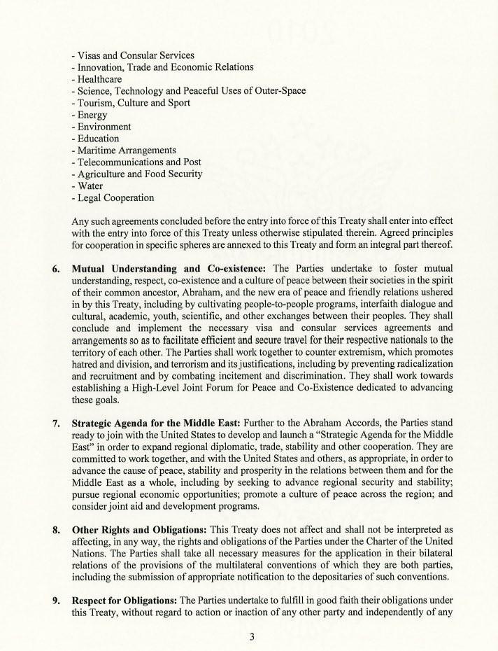 وفي وقت لاحق، أصدر البيت الأبيض نسخة من الاتفاقية الثنائية البحرينية- الإسرائيلية ليتضح، ايضاً، أنها لم تتناول قضية ضم الاحتلال "الإسرائيلي" للضفة المحتلة من بعيد أو قريب.