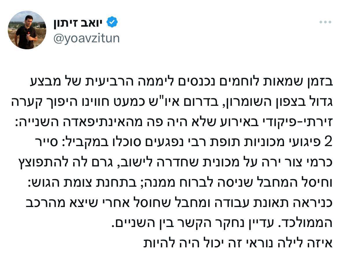 فيما غرَّدَ مراسل يديعوت أحرنوت: "بينما مئات الجنود يعملون في شمال الضفة لليوم الرابع تواليًا، فإننا في الجنوب نشهد انقلابًا في المشهد، حدثٌ لم نشهده منذ الانتفاضة الثانية".