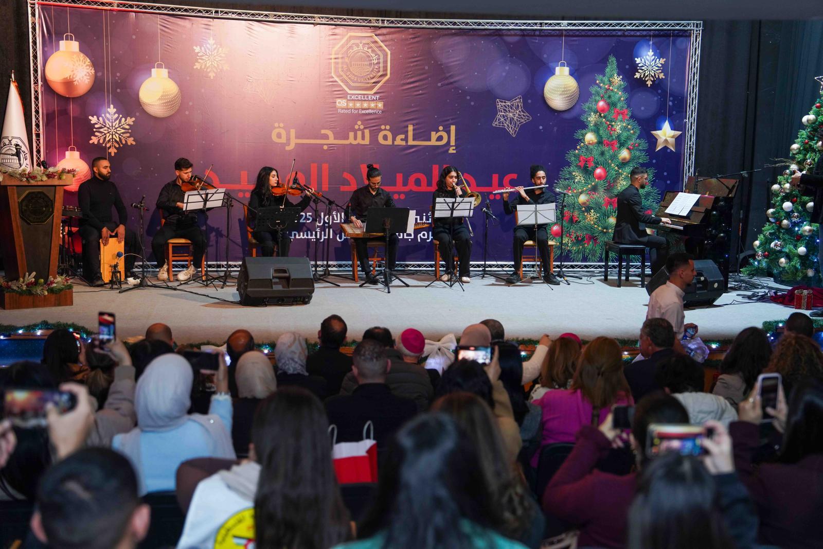 وتخلل الحفل عزف موسيقي قدمته فرقة جامعة القدس، وعروض قدمتها الكشافة إيذانًا بانطلاق احتفالات العيد المجيد، إلى جانب تكريم للحضور.