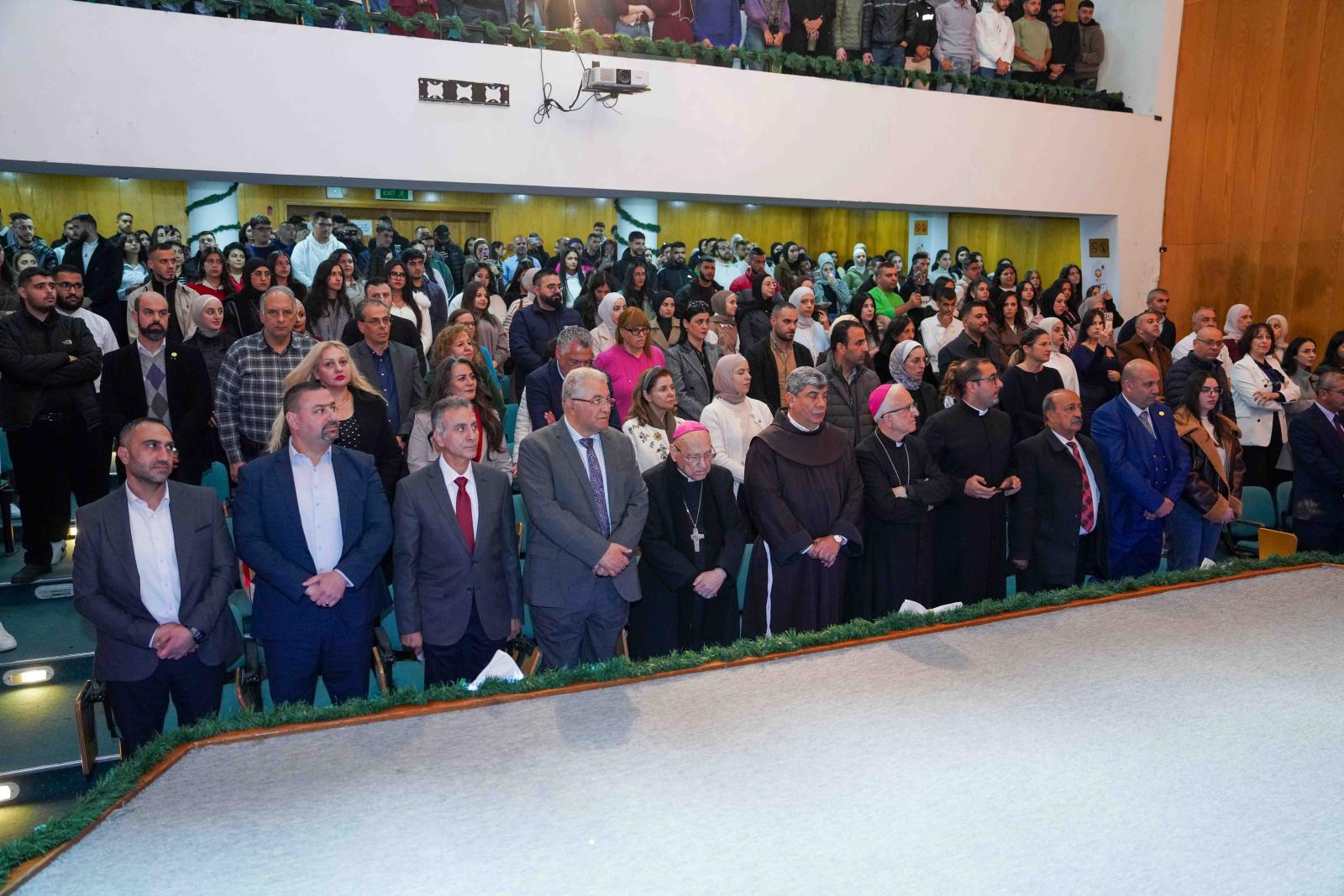 احتفلت جامعة القدس بإضاءة شجرة الميلاد إيذانًا بانطلاق احتفالات أعياد الميلاد المجيدة، وتجسيدًا لرسالة الجامعة في ترسيخ قيم الوحدة والمحبة والأمل، بمشاركة رجال دين وممثلين عن مؤسسات رسمية وأهلية، وموظفي وطلبة الجامعة، بتنظيم عمادة شؤون الطلبة والطلبة المسيحيين في الجامعة.