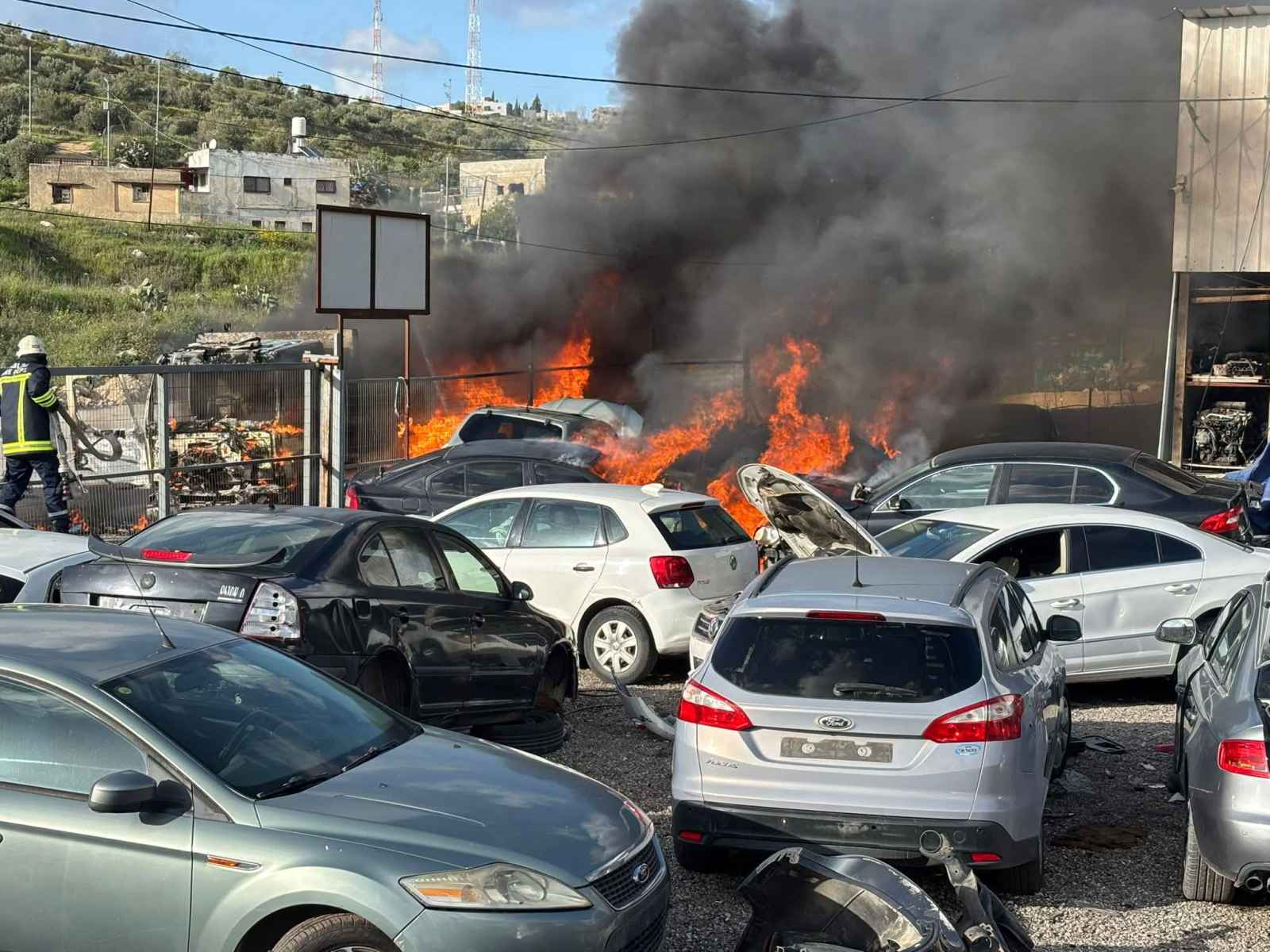 مستوطنون يحرقون مشطبا للمركبات في دير شرف وخيمة في المسعودية