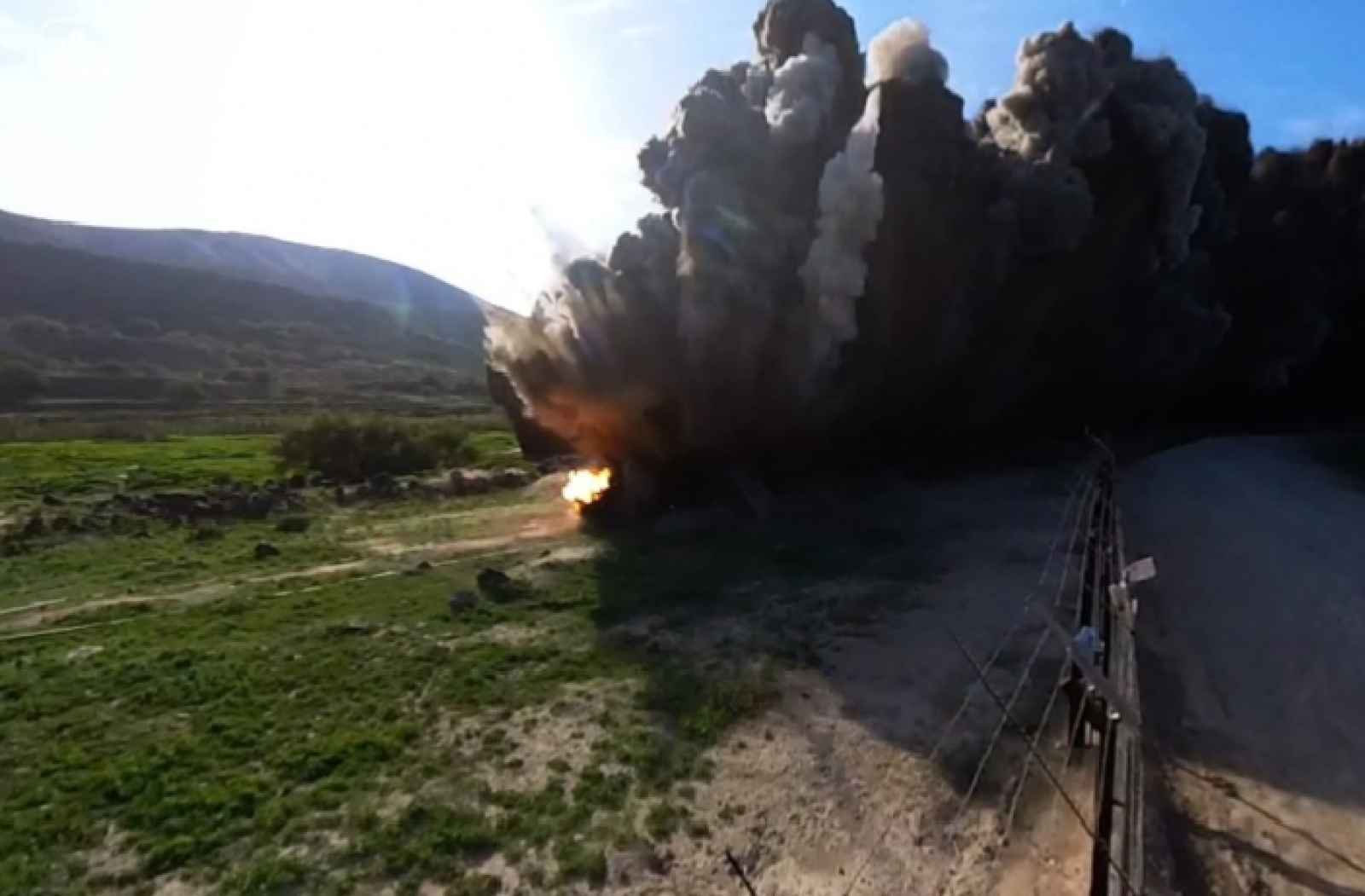 مستوطنون يحرقون جرافة "باجر" في أحد محاجر بيت فجار