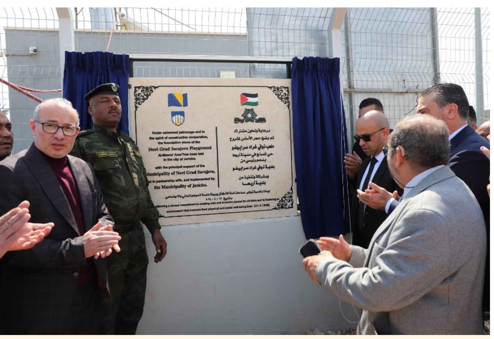 إزاحة الستار عن حجر أساس ملعب الأحياء في أريحا بدعم بوسني
