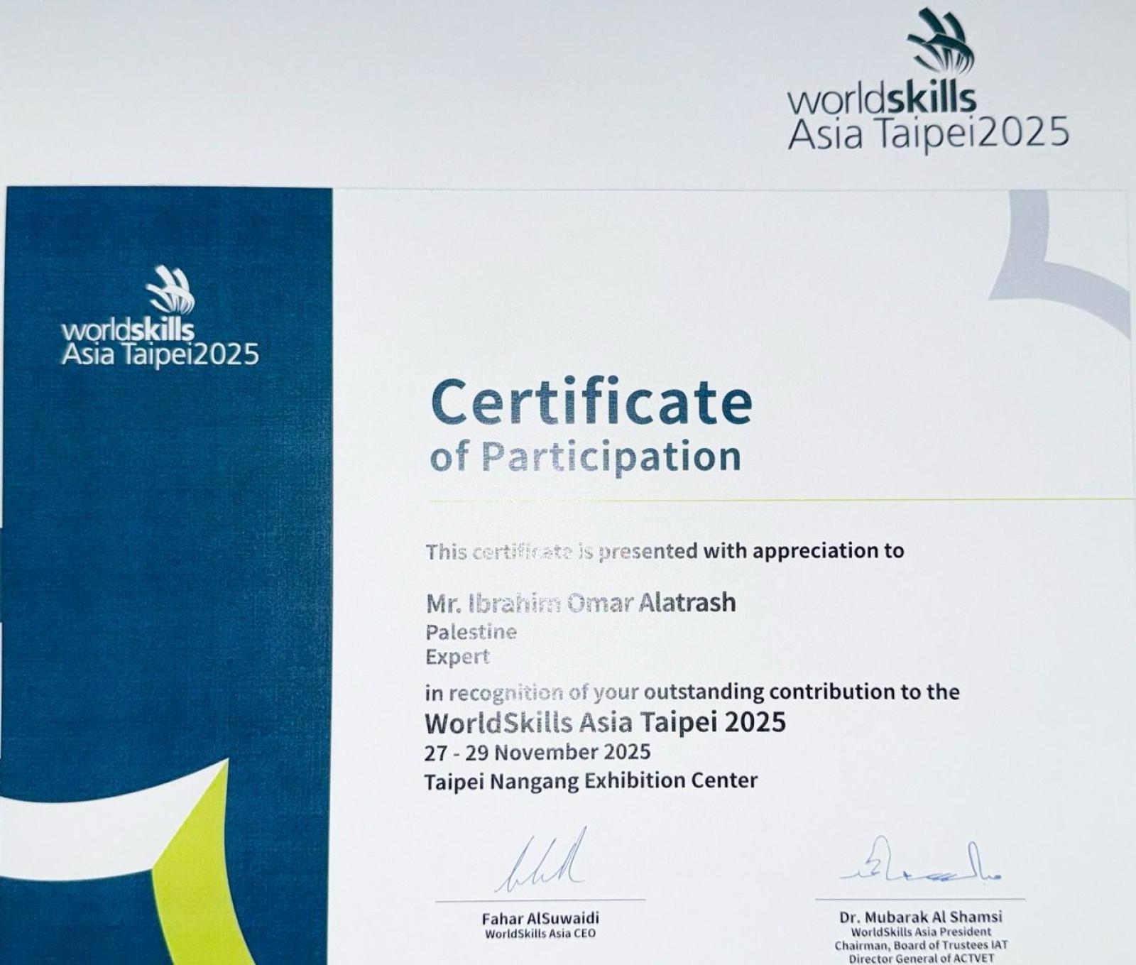 الكلية الذكية الجامعية تمثّل فلسطين في مسابقة المهارات العالمية – آسيا 2025 وتحصد ميدالية التميز